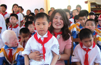 2011年6月1日,集團(tuán)人力資源總監(jiān)李俐萱和聾啞兒童一起歡度六一。