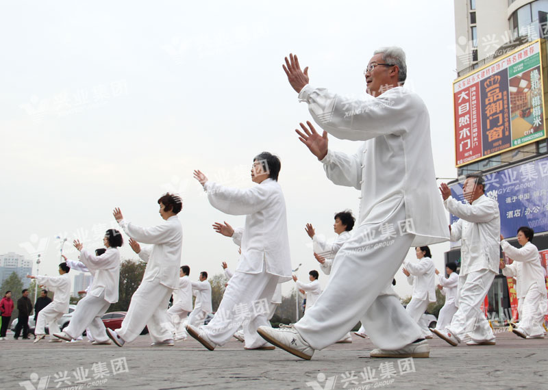 2014年11月,興業(yè)中老年文體俱樂部在興業(yè)王府大街進(jìn)行年終總結(jié)匯演(張浩 攝)