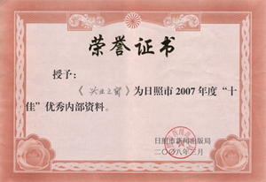·2007年,《興業(yè)之窗》被日照市新聞出版局評為日照市十佳優(yōu)秀內部資料