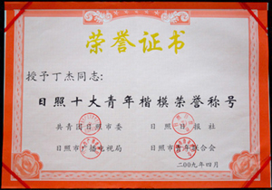 ·2009年,丁杰董事長獲得“日照十大青年楷模榮譽(yù)稱號(hào)”