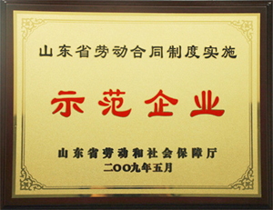 ·2009年5月,被評(píng)為:山東省勞動(dòng)合同制度實(shí)施示范企業(yè)