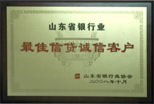 ·2008年10月,被評(píng)為:山東省銀行業(yè)最佳信貸誠信客戶