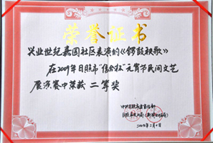 ·2009年2月,2009年日照市“信合杯”元宵節(jié)民間文藝展演賽中榮獲二等獎(jiǎng)