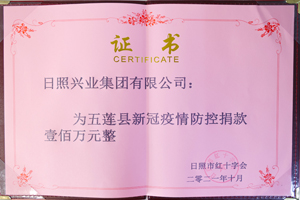 2021年10月,興業(yè)集團(tuán)為"五蓮縣新冠疫情防控捐款壹佰萬元"