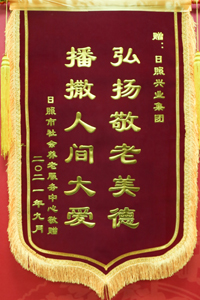 2021年9月,日照市社會養(yǎng)老服務(wù)中心贈予錦旗興業(yè)集團(tuán)”播撒人間大愛,弘揚(yáng)敬老美德“