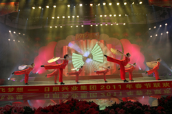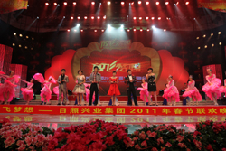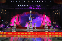 唱豐收慶新春歌舞盛世,展宏圖興大業(yè)放飛夢(mèng)想。1月23日晚,“放飛夢(mèng)想”日照興業(yè)集團(tuán)2011年春節(jié)聯(lián)歡晚會(huì)在日照廣播電視臺(tái)千米演播大廳盛裝上演。日照興業(yè)集團(tuán)領(lǐng)導(dǎo)班子和來(lái)自興業(yè)各條戰(zhàn)線(xiàn)上的職工代表500余人歡聚一堂,載歌載舞,共享勝利的喜悅,歡慶新春佳節(jié)的到來(lái)。日照市金融界各大銀行行長(zhǎng)、新聞媒體、業(yè)務(wù)合作伙伴的領(lǐng)導(dǎo)和嘉賓應(yīng)邀觀(guān)賞了晚會(huì)。