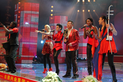 晚會(huì)的第三篇章在五洲唱響樂(lè)團(tuán)的歌聲中唱響,一首《We are The World》,激情四溢,來(lái)自世界五大洲的六名優(yōu)秀歌手載歌載舞,震撼全場(chǎng),在觀(guān)眾們熱烈的歡呼聲中,他們又演唱了《你我是一家》、《唱響五洲》兩首大家耳熟能詳?shù)母枨瑘?chǎng)下歡呼雷動(dòng),掌聲澎湃,引爆全場(chǎng)激情。《歡天喜地》是興業(yè)社區(qū)的中老年朋友們自編自演的舞蹈,形式歡快喜慶,節(jié)奏緊湊利落,加上配合演員們嫻熟的舞步,充分展現(xiàn)了中老年人的良好精神風(fēng)貌和藝術(shù)才華。“每朵浪花一樣澎湃,每個(gè)夢(mèng)想都值得灌溉,眼淚變成雨水,就能落下來(lái),每個(gè)孩子都應(yīng)該被寵愛(ài)。”這是來(lái)自興業(yè)希望小學(xué)的20多名小學(xué)生代表用真情演繹的公益歌曲《最好的未來(lái)》,他們純真的童音唱出無(wú)比質(zhì)樸的情感,令全場(chǎng)觀(guān)眾唏噓動(dòng)容,對(duì)孩子們的表演報(bào)以熱烈地掌聲!按河曜虧(rùn)心靈,春風(fēng)吹暖心扉,興業(yè)的春天最美;春色為我們添彩,春光為我們?cè)鲚x,興業(yè)人的笑容最美;山一樣的氣魄,海一樣的魂,春天里走來(lái)了興業(yè)人!边@首《興業(yè)春天》是歌唱興業(yè)人自己的歌曲,自2010年在興業(yè)集團(tuán)春晚推出以來(lái),已在興業(yè)人中間廣為傳唱。當(dāng)這熟悉的旋律再次響起時(shí),全場(chǎng)觀(guān)眾不禁心潮澎湃,撫今追昔,激起無(wú)限情思。配樂(lè)詩(shī)朗誦《興業(yè)情懷》從一個(gè)男孩和媽媽的對(duì)話(huà)配以鷗鳴和海浪交織的樂(lè)章中緩緩拉開(kāi),三名領(lǐng)誦人用淳樸真摯的語(yǔ)言抒發(fā)對(duì)興業(yè)的無(wú)限熱愛(ài),40多名職工組成的合誦時(shí)而深沉、時(shí)而高亢;時(shí)而溫情、時(shí)而激昂,深情謳歌一代興業(yè)人艱苦創(chuàng)業(yè)、傾情公益、興業(yè)報(bào)國(guó)的高尚情懷,令觀(guān)眾們心潮澎湃,感慨萬(wàn)千,更激發(fā)了大家放飛夢(mèng)想,開(kāi)創(chuàng)美好未來(lái)的激情和斗志!俺綁(mèng)想一起飛,你我需要真心面對(duì),讓生命回味這一刻,讓歲月銘記這一回!庇膳嵊、王蓬等六名青年職工演唱的《超越夢(mèng)想》,充滿(mǎn)激情,充滿(mǎn)力量,也為晚會(huì)劃上了一個(gè)圓滿(mǎn)的句號(hào)。